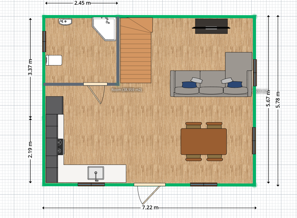 w opcji 8×7 – dodatkowy pokój lub pomieszczenie gospodarcze
