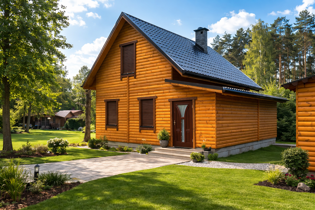 Pełnoprawny dom rodzinny w drewnianej formie. Trzy sypialnie, duża łazienka oraz strefa dzienna z otwarciem na taras tworzą harmonijną przestrzeń do życia przez cały rok.